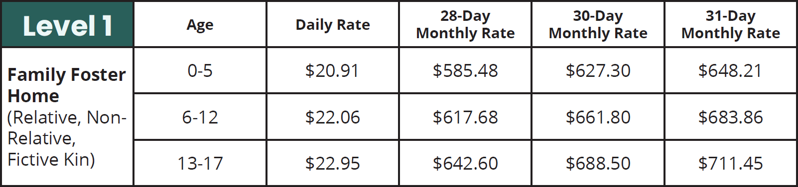 Foster care maintenance rates and payments