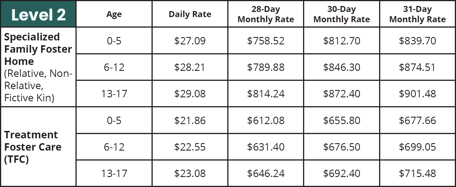 Types of foster care maintenance rates